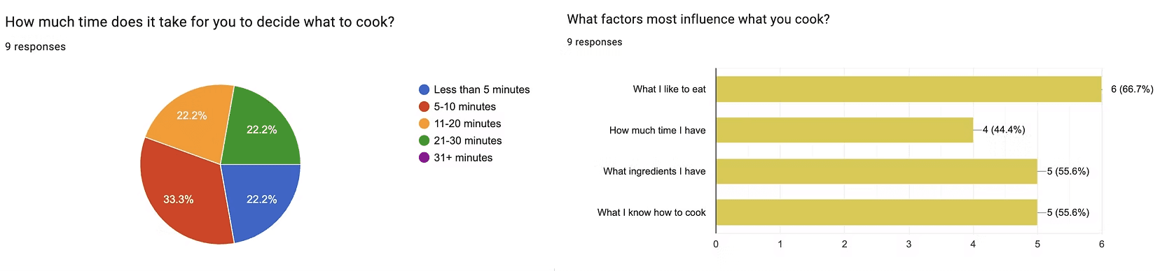We surveyed 9 people and interviewed 3 people ages 15-51+ years old on the decisions they make when cooking and their food waste habits.