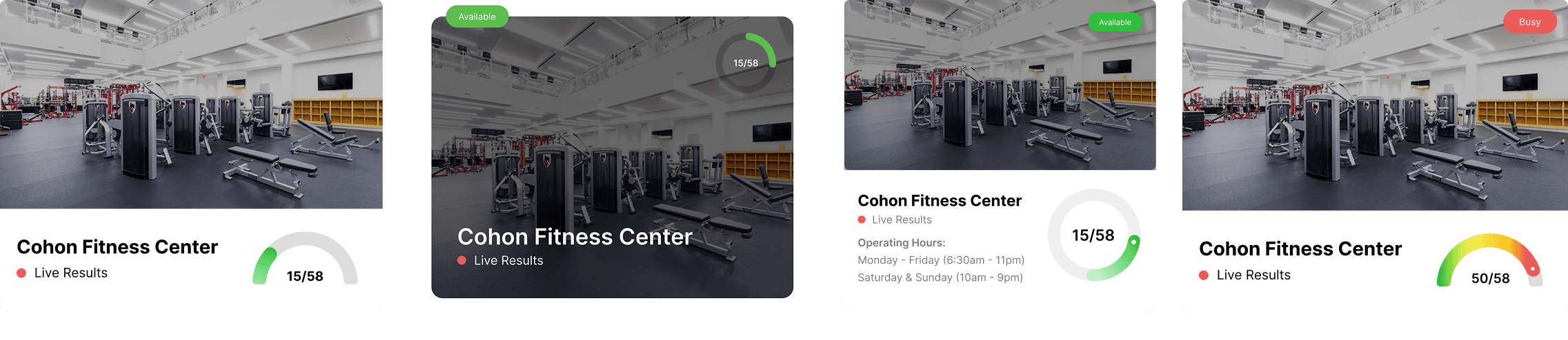 we saw a meter design to be more effective and provided more context into occupancy of the gym. which led to several different design iterations following that same line of thought.