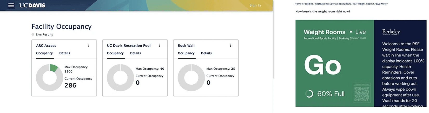 To ensure security of student data, we established a login that goes through the two-step integration system before showing any sensitive data (ex: occupancy of gyms)