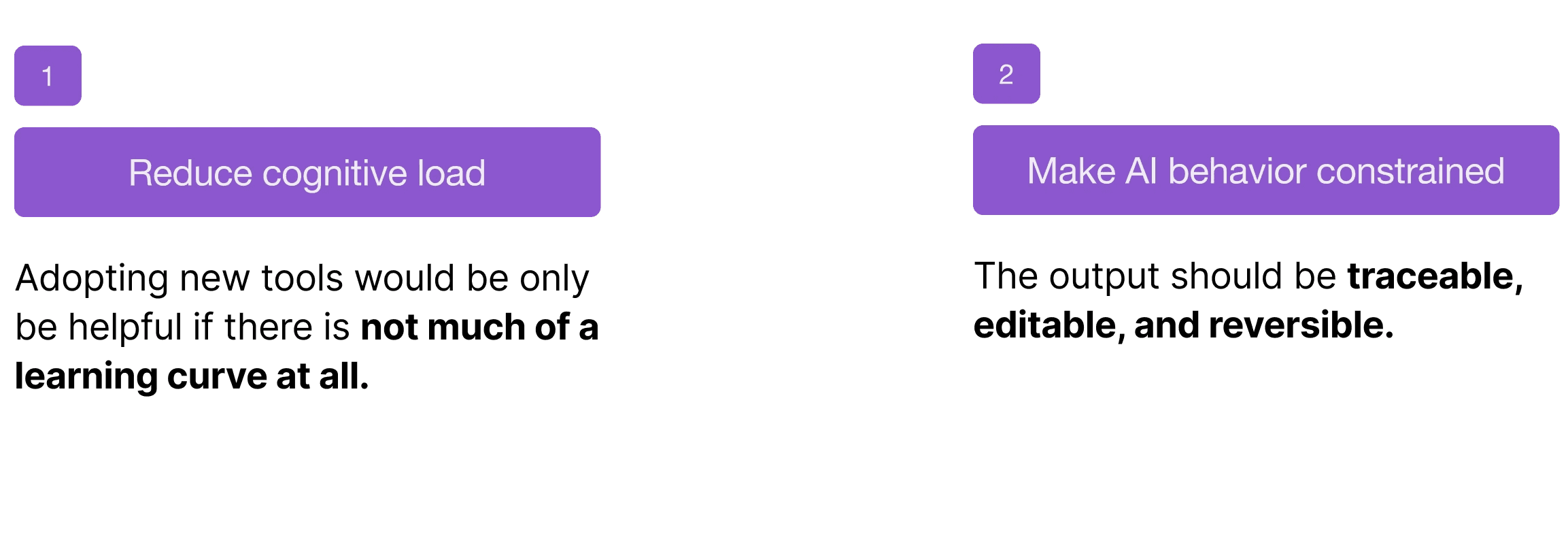 This project taught me that designing AI products isn’t about maximizing capability, it’s about shaping behavior. It's really important to decide where AI should be flexible, where it should be constrained, and how much responsibility to place on the user at each step.